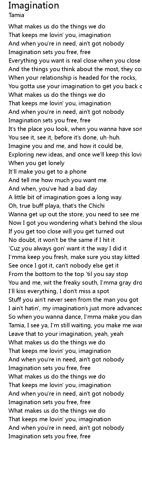 | [03:17.76] | That keeps me lovin' you, imagination |