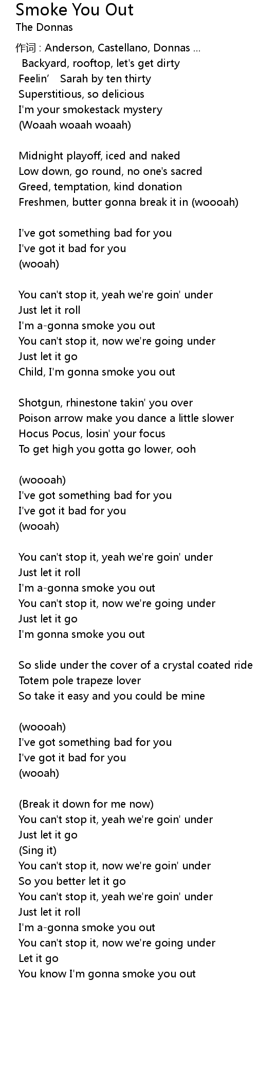 | I' m agonna smoke you out | |