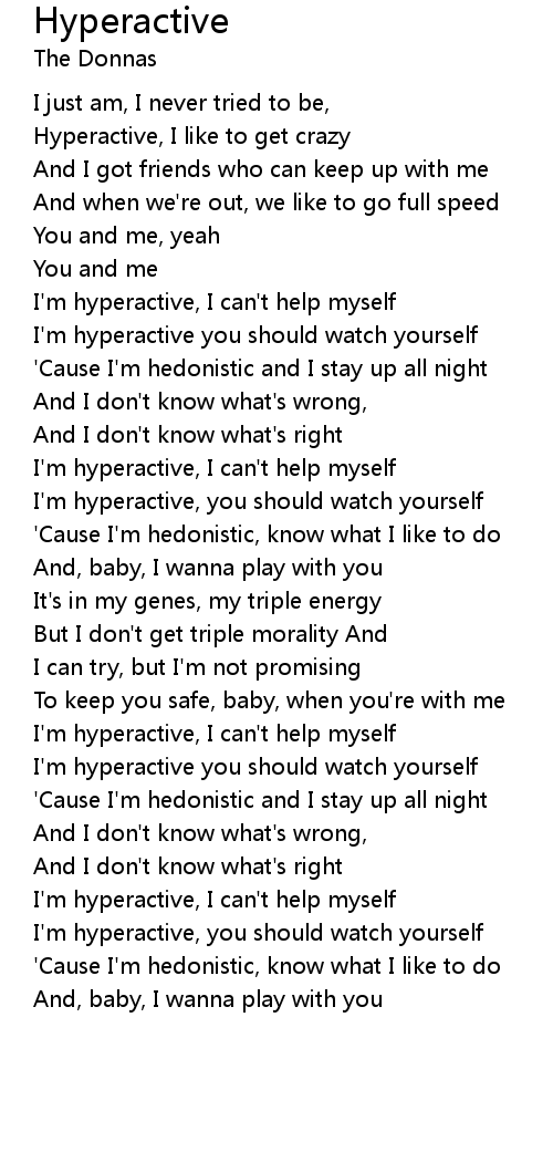 Hyperactive, I like to get crazy |
