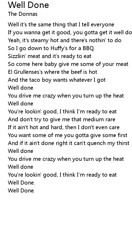 If you wanna get it good, you gotta get it well done |