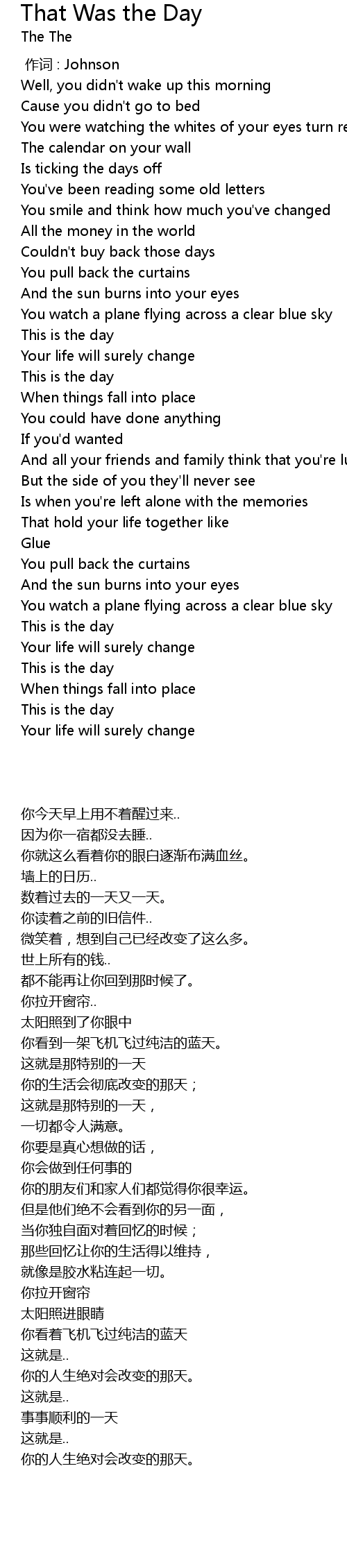 | [00:20.29] | Well, you didn' t wake up this morning |