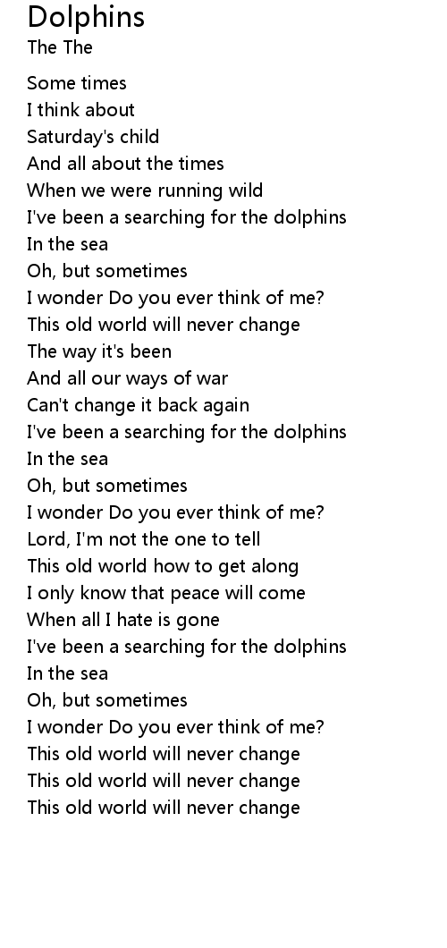 | I've been a searching for the dolphins | |