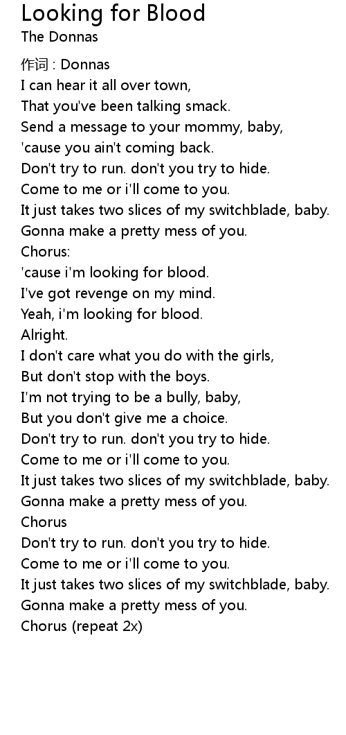 | Song | Looking for Blood |