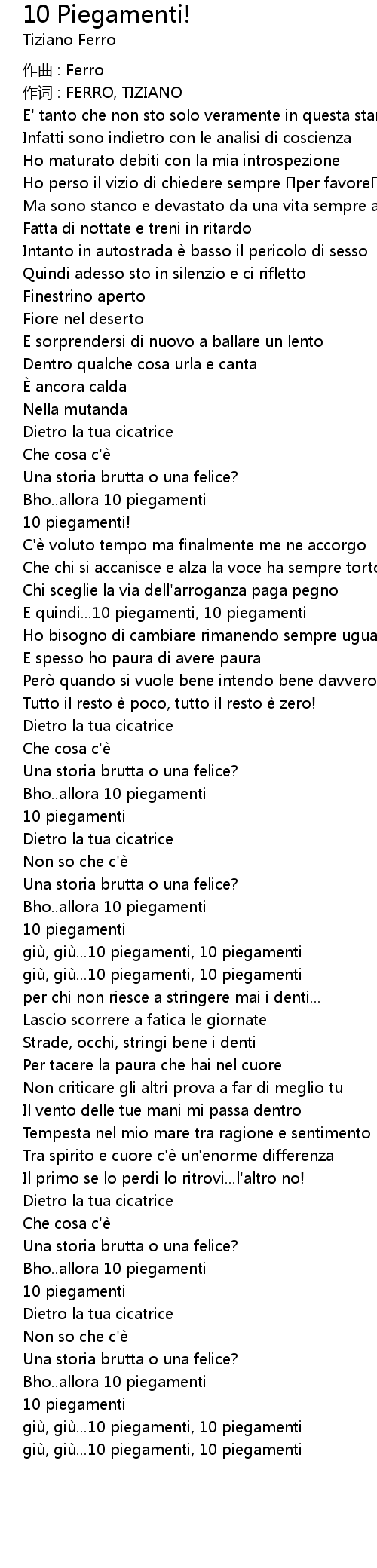 | 作词 : FERRO, TIZIANO | |