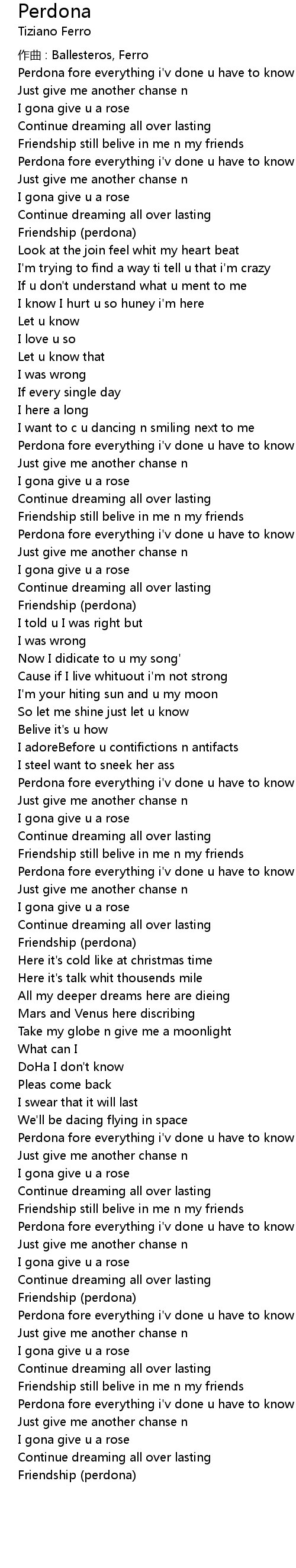 | Perdona fore everything i'v done u have to know i'm sorry | |