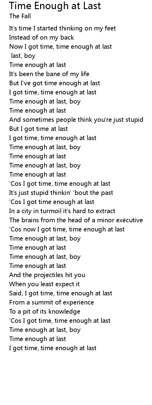 I got time, time enough at last |