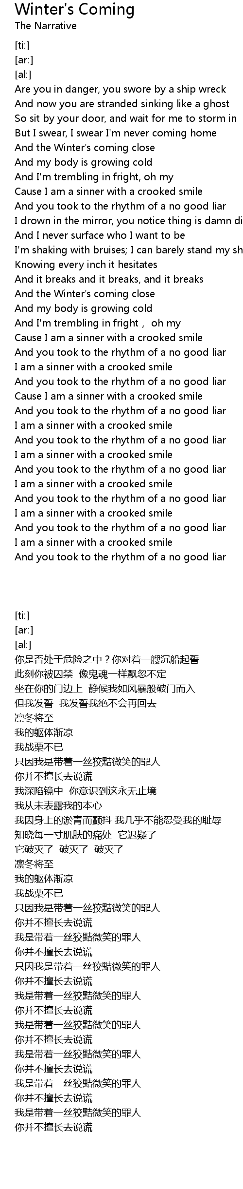 | [01:15.73] | Cause I am a sinner with a crooked smile |
