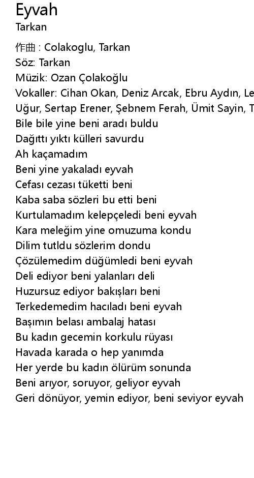 | Beni ar yor, soruyor, geliyor eyvah | |