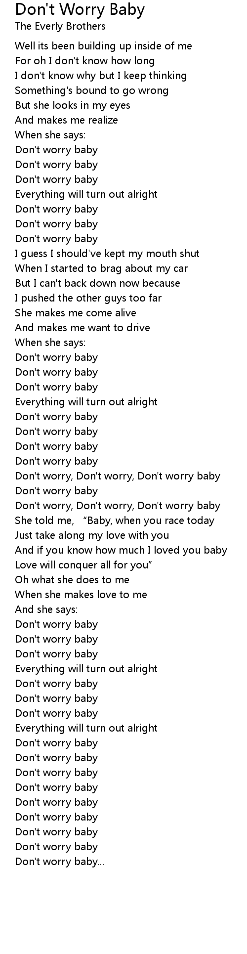 | Don' t worry, Don' t worry, Don' t worry baby | |