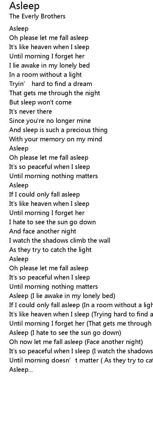 | It' s so peaceful when I sleep I watch the shadows climb the wall | |