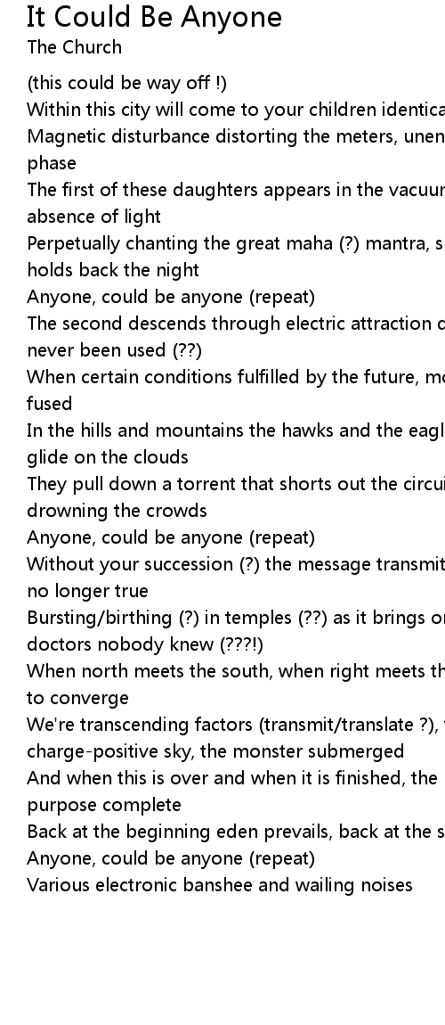 Anyone, could be anyone (repeat) |