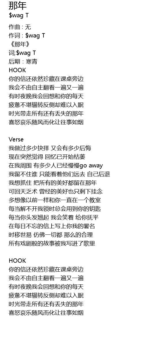 | 作词 : $wag T | |
