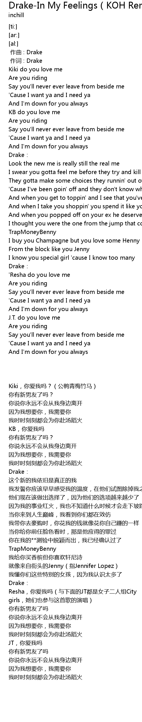 | [00:10.77] | Kiki do you love me |