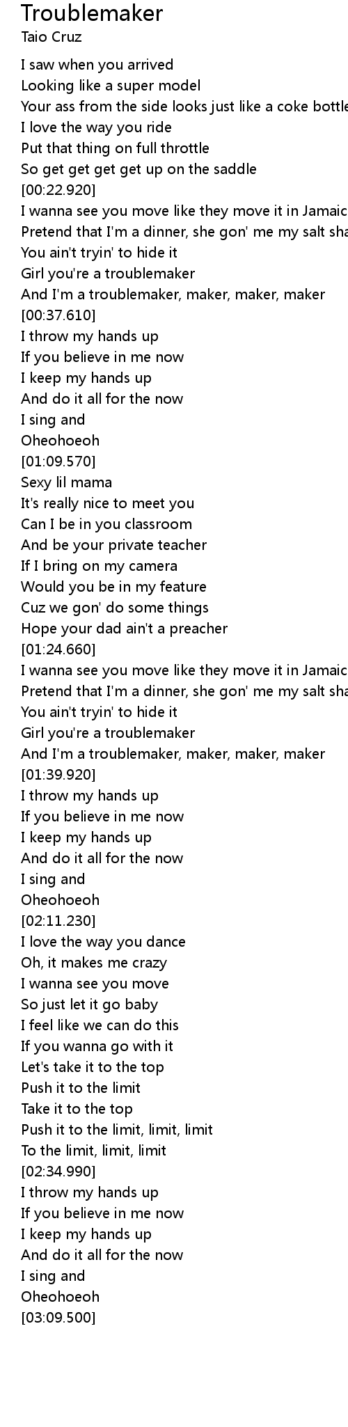 | [01:34.490] | Girl you're a troublemaker |