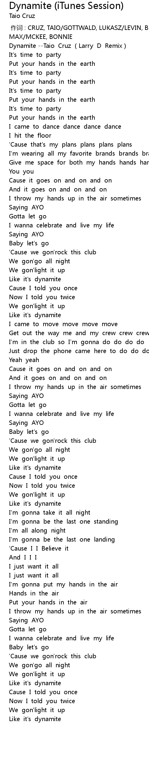 | [00:03.960] | Dynamite Taio Cruz Larry D Remix |