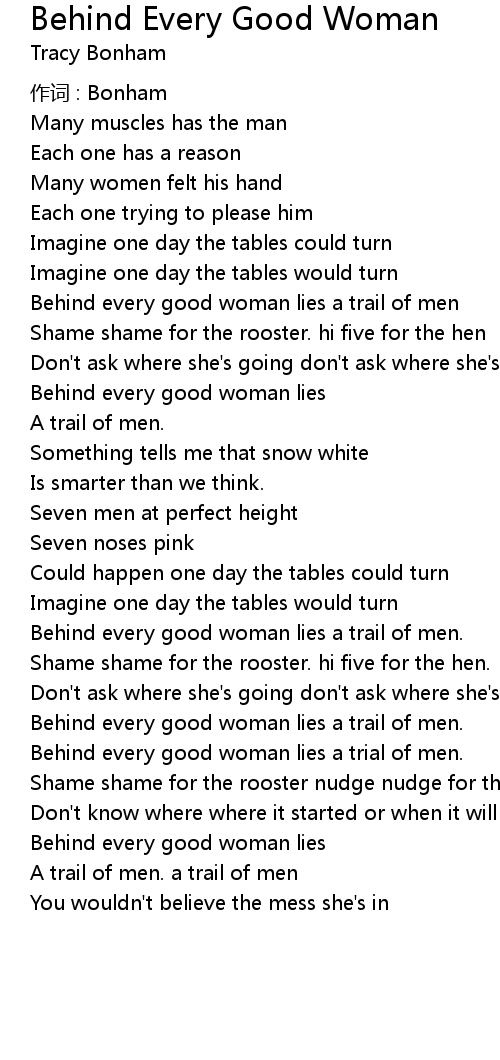 | Song | Behind Every Good Woman |