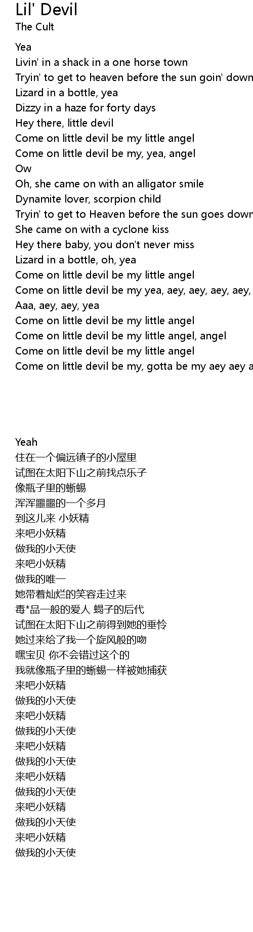 Come on little devil be my yea, aey, aey, aey, aey, aey, aey, oww |
