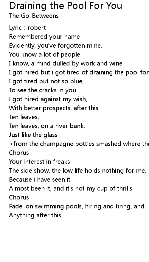 | Song | Draining the Pool For You |
