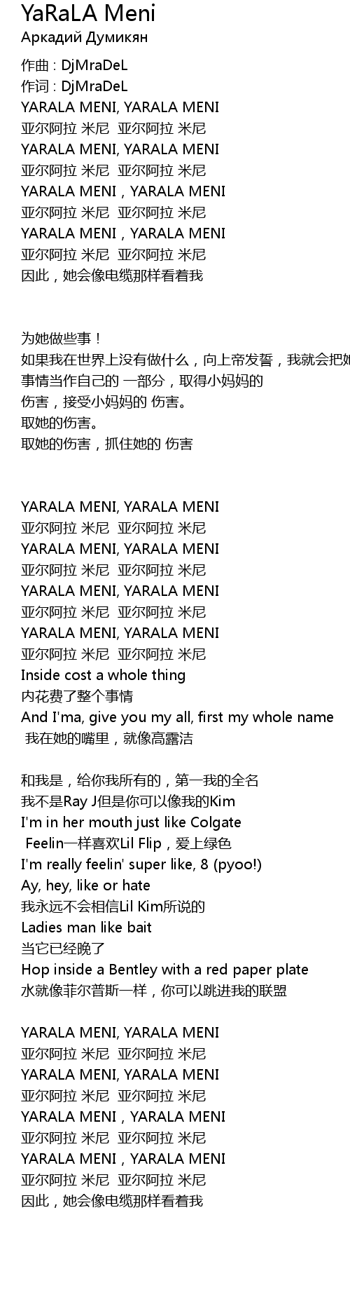 | Song | YaRaLA Meni |