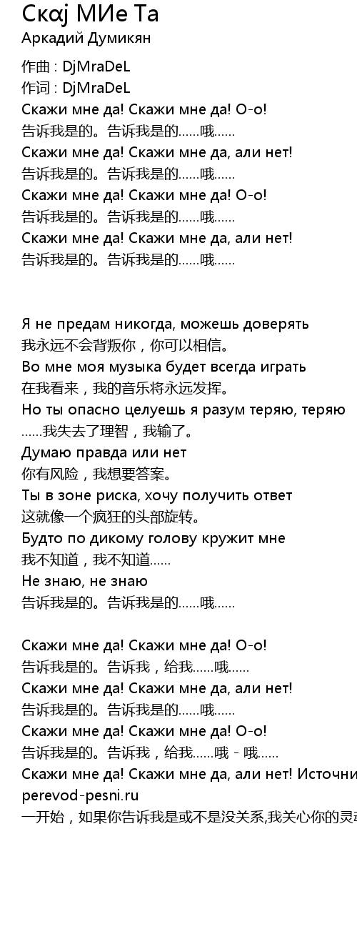 | Скажи мне да! Скажи мне да, али нет! Источник perevod-pesni.ru | |