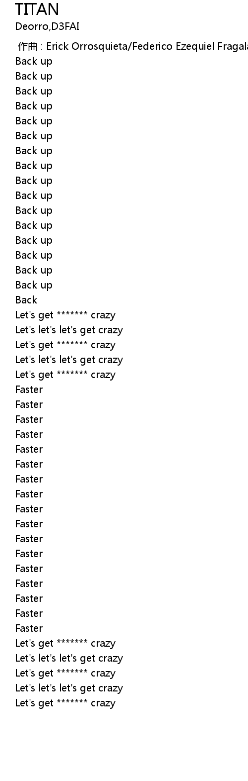 | [02:58.02] | Let's get ******* crazy |