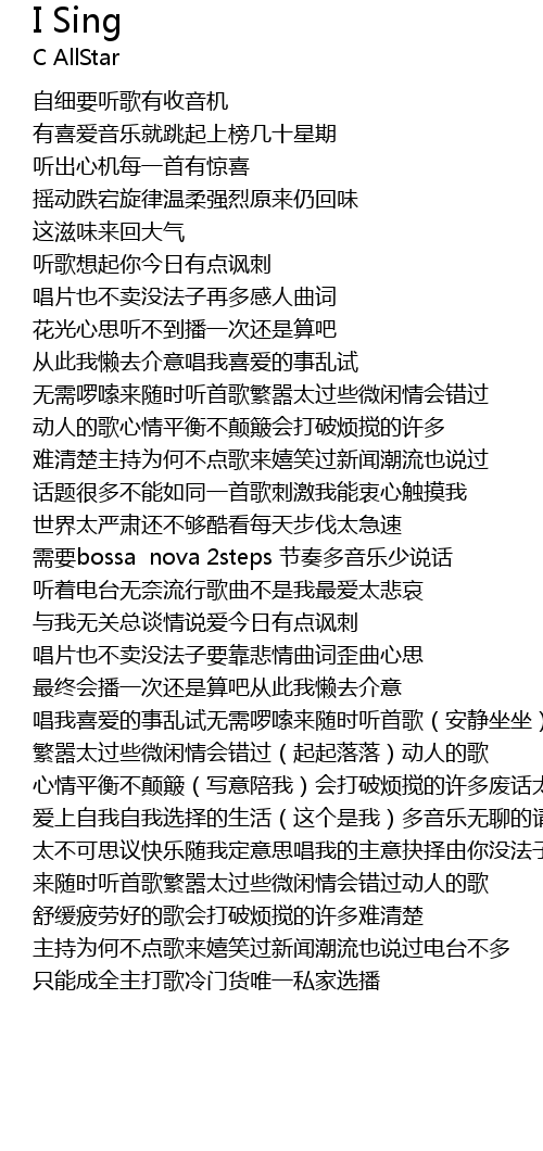 | [02:35.21] | 唱我喜爱的事乱试无需啰嗦来随时听首歌(安静坐坐) |