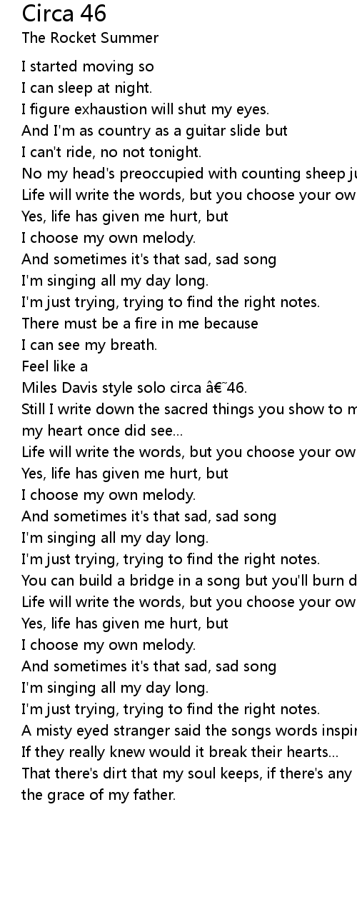 | You can build a bridge in a song but you' ll burn down the ones in your life. | |