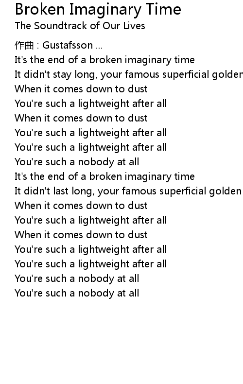| It' s the end of a broken imaginary time | |