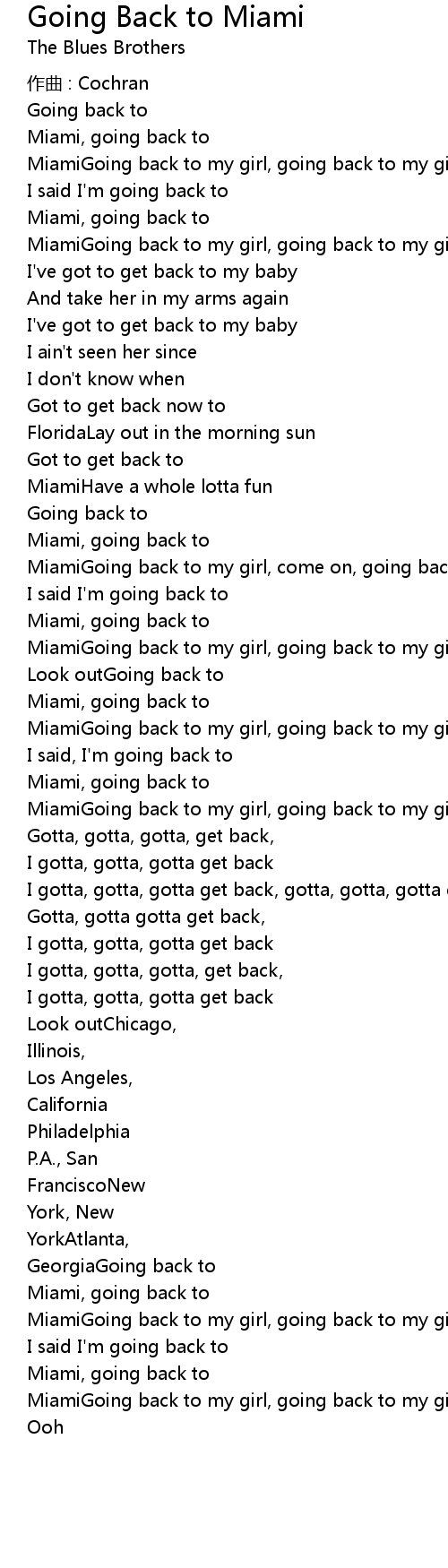 | MiamiGoing back to my girl, come on, going back to my girl | |