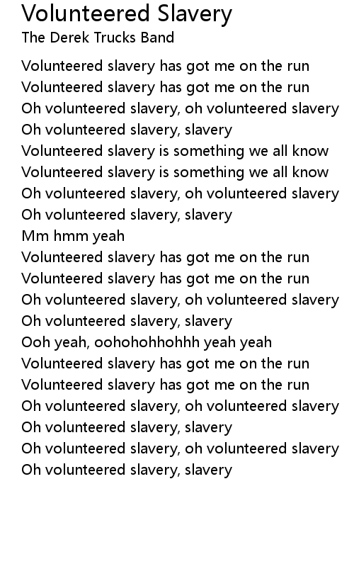 Oh volunteered slavery, slavery |