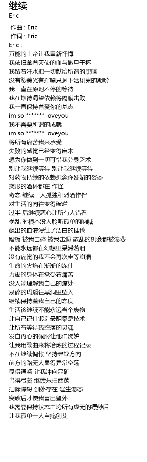 | [00:01.000] | 作词 : Eric |