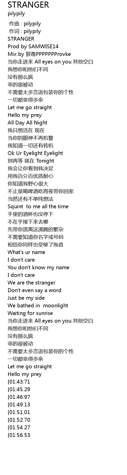 | [01:59.36][01:43.71][01:28.91] | All Day All Night |