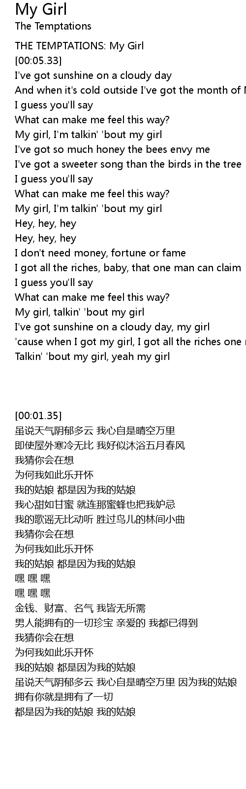 My girl, talkin' 'bout my girl |
