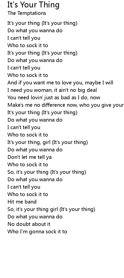 So, it's your thing (It's your thing) |