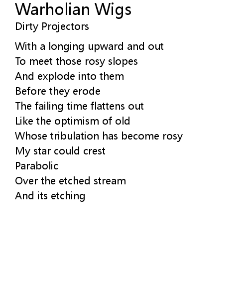 | Song | Warholian Wigs |