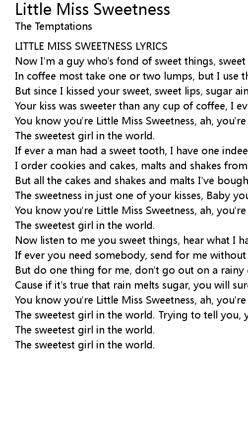 You know you're Little Miss Sweetness, ah, you're Little Miss Sweetness |