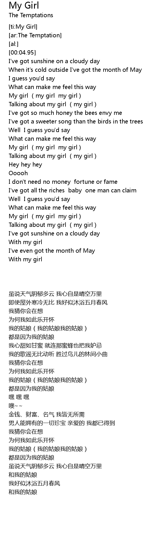 | [00:18.63] | When it's cold outside I've got the month of May |