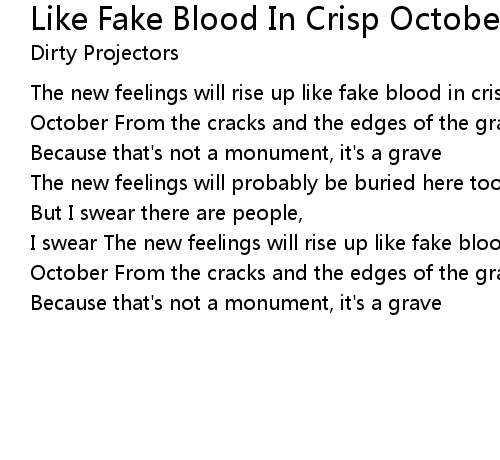 | I swear The new feelings will rise up like fake blood in crisp | |
