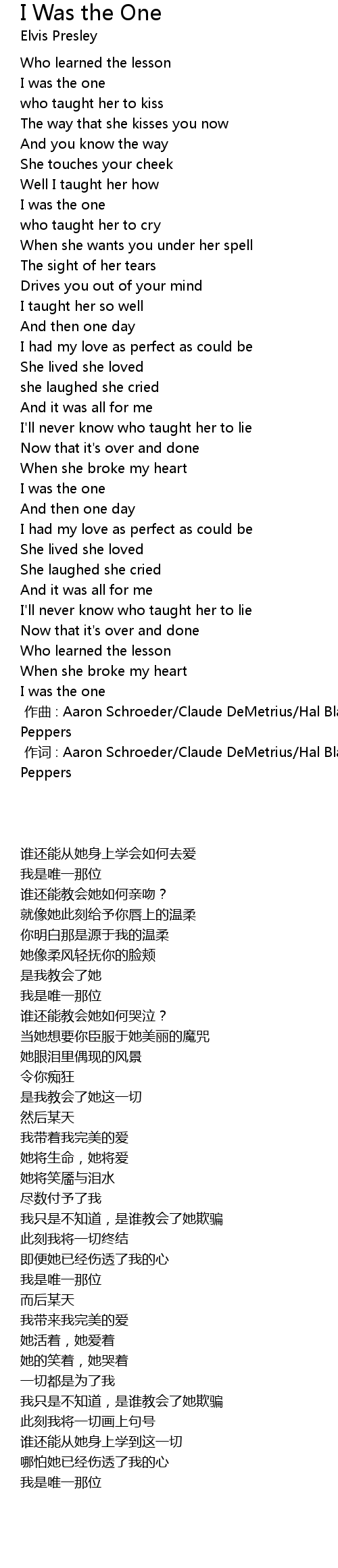 | [00:00.000] | zuo ci : Aaron Schroeder Claude DeMetrius Hal Blair Wm Andrew Peppers |