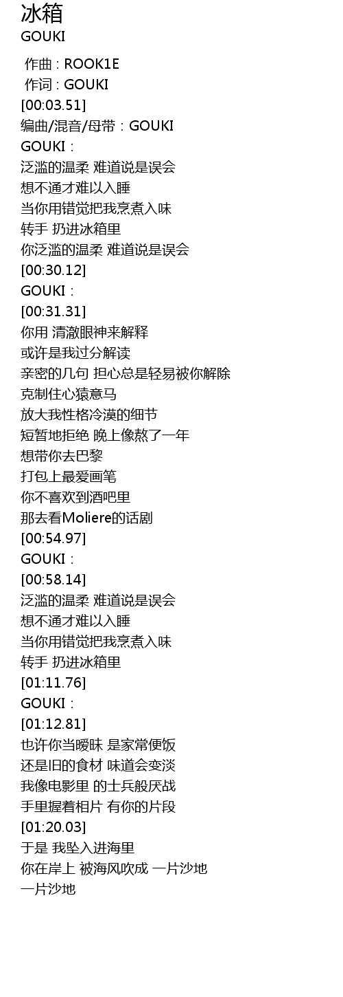 | [00:05.00] | 编曲/混音/母带:GOUKI |