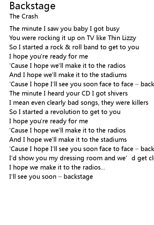 | ' Cause I hope I' ll see you soon face to face backstage | |