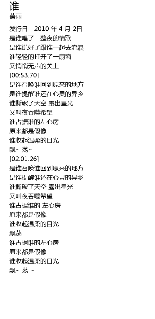 | [00:58.05] | 是谁召唤谁回到原来的地方 |
