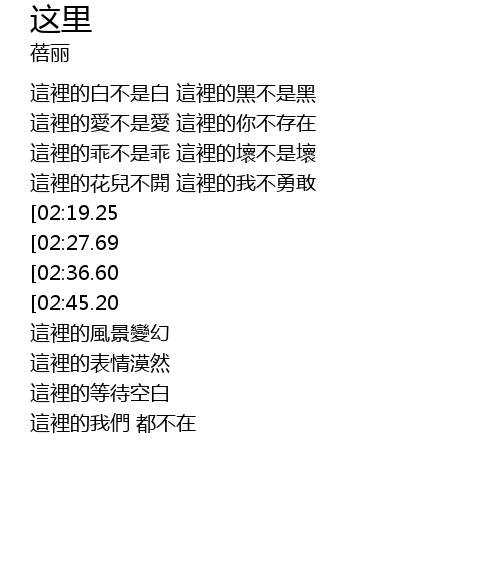 | [00:21.91] | 這裡的白不是白 這裡的黑不是黑 |