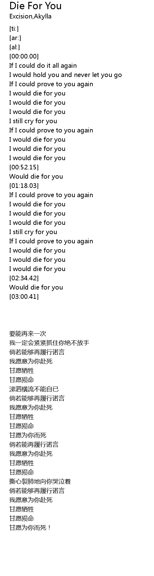 | [00:53.04] | Would die for you |
