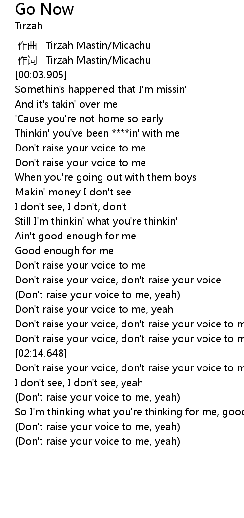 | [01:36.849] | Don' t raise your voice to me, yeah |