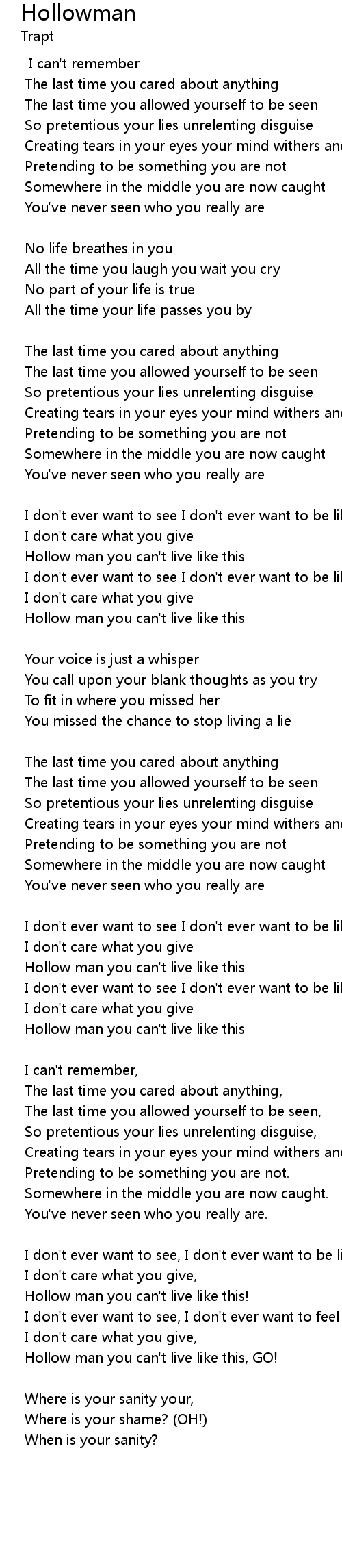 | Hollow man you can't live like this, GO! | |