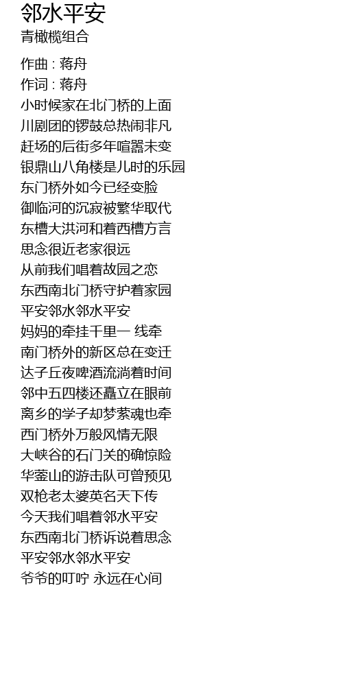 | xiǎo shí hòu jiā zài běi mén qiáo de shàng miàn | |