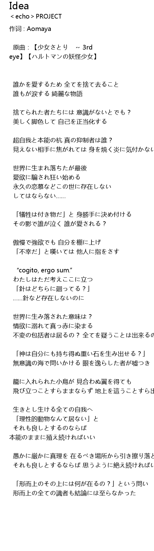 | 原曲:【少女さとり ~ 3rd eye】【ハルトマンの妖怪少女】 | |