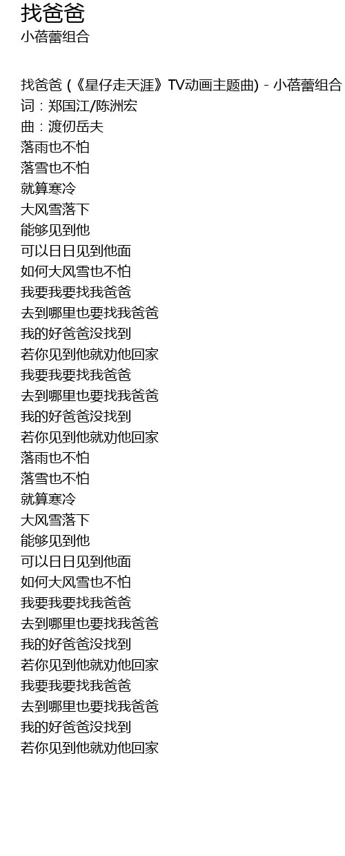 | 找爸爸 (《星仔走天涯》TV动画主题曲) - 小蓓蕾组合 | |