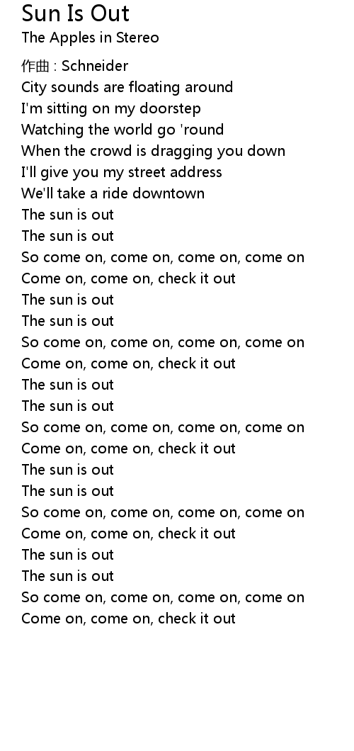 | Song | Sun Is Out |